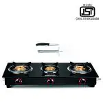 Fabiano 3 Burner Smart Combo With Gas Lighter Glass Manual Gas Stove (Black, 3 Burners)
