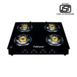 Fabiano FAB-4BR SMART 4 Burner Glass Gas Stove With Manual Ignition ISI Marked (Black)