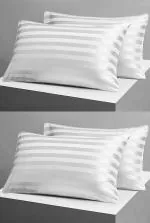 Fabture Cotton Pillow Covers set of 4 pieces, Satin Striped pillow covers, plain pillow covers (White)