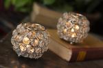 Fashion Bizz Gold Brass, Glass Crystal Cup Tealight Holder Set ,Pack of 2