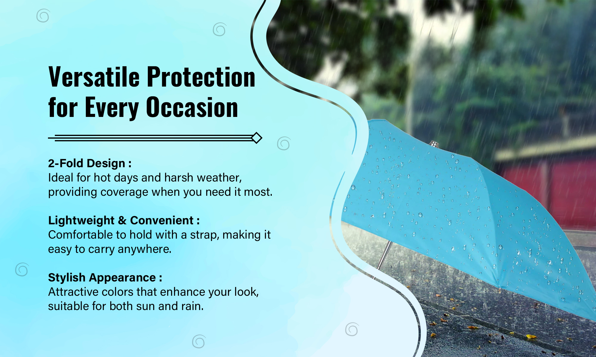 - 2 fold umbrella for hot days, rainy and harsh weathers