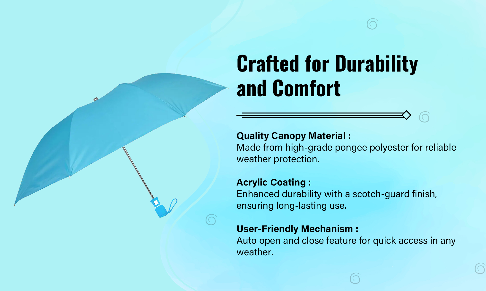 Fendo 2 Fold Umbrella For Men's and Women's | Wind And RainProof Umbrella - 2 Fold With Auto Open And Close (Sky Blue,24.5 In)