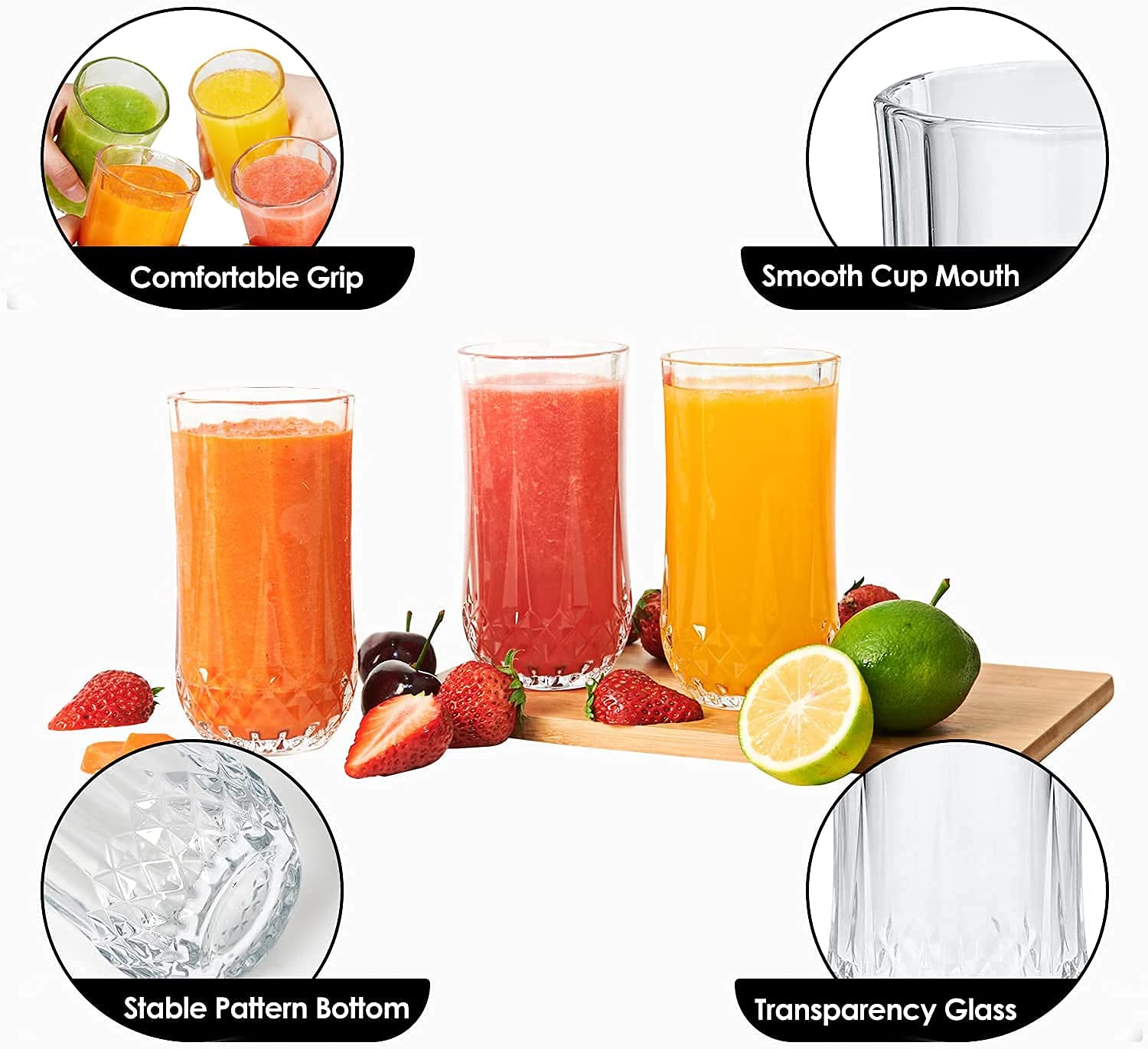 FYRLA Diamond Cut Crystal Clear Drinking Glasses Set of 6, Elegant and Durable Tall Bar Glassware for Water, Juice, Cocktails, Beer Whiskey Glasses 300ml