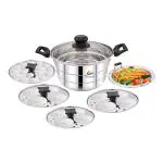 Ginara Steel Idly Cooker Pot | Idli Pot compatible with Induction and Gas Stove | Steel Idli Maker with Glass Lid - 12 idli, 13Mini idli & 1Steamer