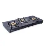 Glen 1033 GT BB Black High Flame LPG Glass Gas Stove With 3 Brass Burner