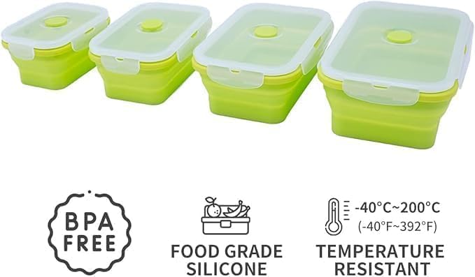 Gopinath enterprise foldable silicone rectangle collapsible lunch box food storage containers tiffin box dabba tiffin cum lunch box for snack, meal, fast food (set of 4)