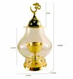 Heaven Decor Gold Round Brass Akhand Diya with Glass Cover 6.4 inch x 3.2 inch