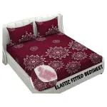 HIDECOR 250 TC Cotton Elastic Fitted Floral Double Bedsheet(198 cm X 182 cm) with 2 Pillow Covers(71 cm X 45 cm) Maroon