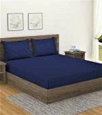 Home Sizzler 300TC Cotton Blue Satin Striped Double Bedsheet with 2 King Size Pillow Covers, 90"X92"