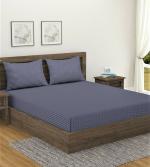 Home Sizzler 300TC Cotton Grey Satin Striped Double Bedsheet with 2 King Size Pillow Covers, 90"X92"