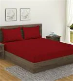 Home Sizzler 300TC Cotton Maroon Satin Striped Double Bedsheet with 2 King Size Pillow Covers, 90"X92"