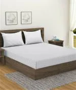 Home Sizzler 300TC Cotton White Satin Striped Double Bedsheet with 2 King Size Pillow Covers, 90"X92"