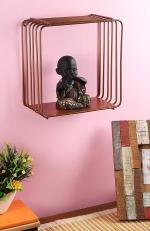 Home Sparkle Copper Metal Square Design Wall Mounted Floating Shelves 25.5X12.5X25.5 cm