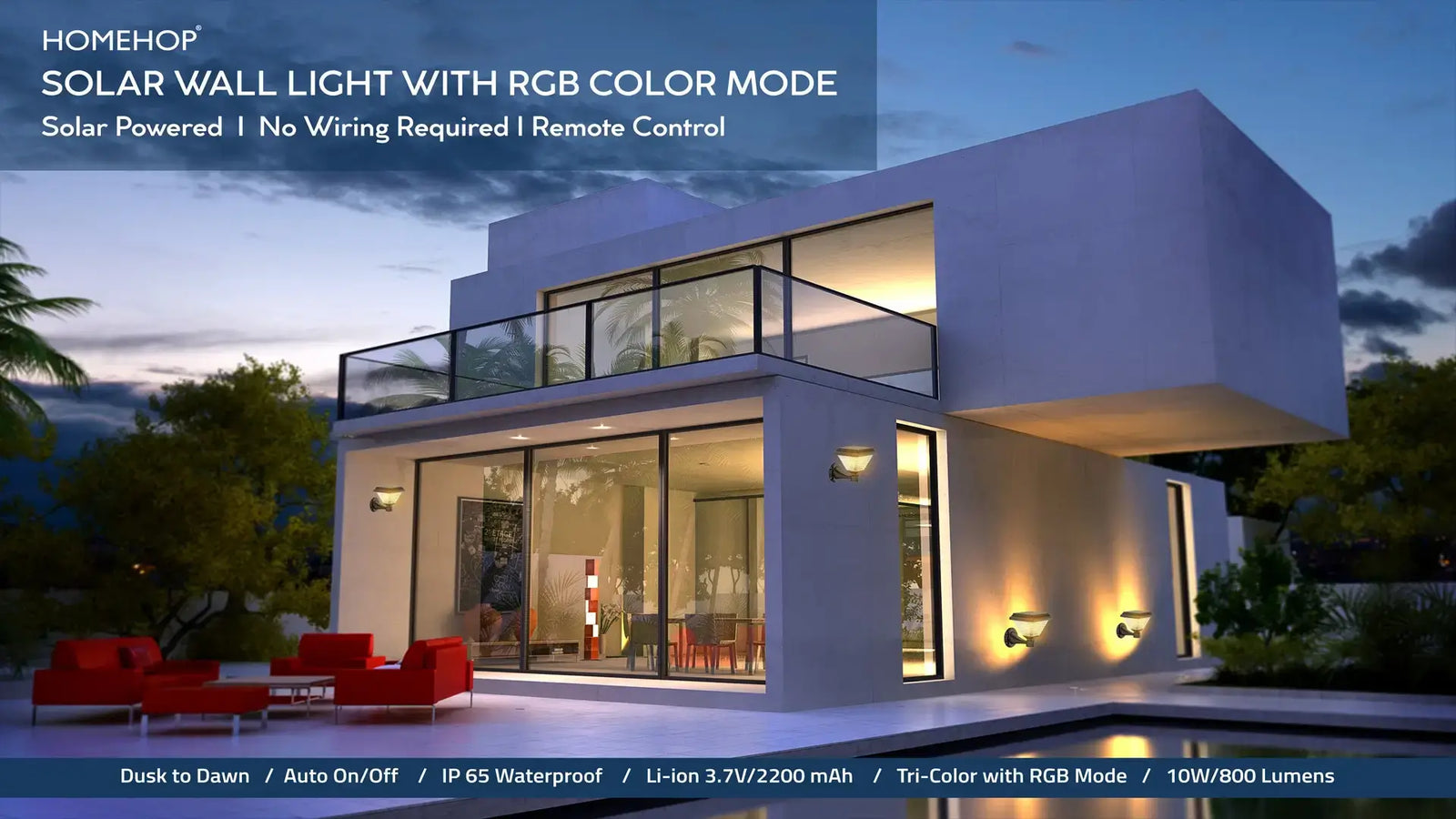 Homehop 10W Led Solar Outdoor Wall Light For Home Garden Waterproof Pillar Decoration Multicolor Lamp