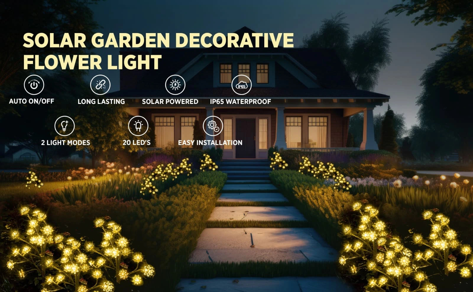 Homehop Solar Lights for Garden 20 Led Blossom, Decorative Flower Lamp, Outdoor, Waterproof for Landscape, Pathway, Home Decor & Courtyard, Auto On/Off,(Warm White, Pack of 2)