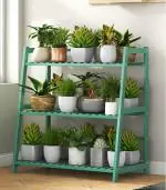 House of Quirk 3-Tier Bamboo Storage Shelf Rack Ladder Shelf for Books, Photos, Plants, Daily Supplies (50cm, Green)