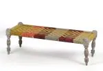Ikiriya Hamilton Sheesham Wood 2 Seater Maachi Bench| Patio Bench in Assorted Multi-Colour Chindi & Yellow Rope Canning
