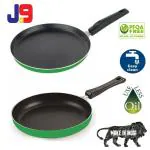 J09 Green Aluminium Non-Stick Dosa Tawa 28 cm & Fry Pan