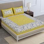 Tamirha Yellow 100% Pure Cotton Jaipuri Print Double Bedsheet With 2 Pillow Cover