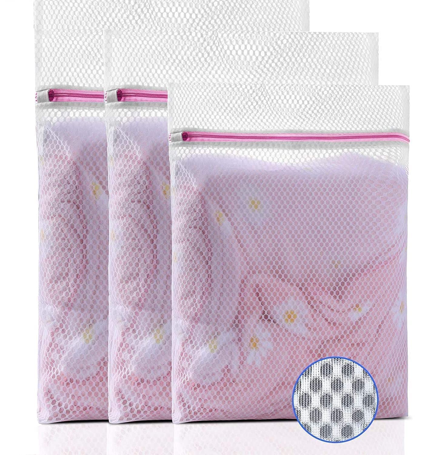 JIRVA Mesh Laundry Clothes Washing Bag, Pack Of 3 - suitable to wash delicate and lingerie, socks, underwear, panties, swimsuits, clothes accessories.