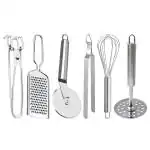 JISUN Grater & Pakkad & Pizza Cutter & Egg Whisk & Roti Chimta & Potato Masher for Kitchen
