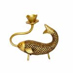 Kalarambh Bharat Haat Brass Fish Candle Holder Stand Handicraft Art 13 x 6 x 12 cm