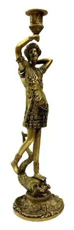 Kalarambh Bharat Haat Yellow Brass Men Candle Stand Handicraft Art 31 x 7 x 48 cm