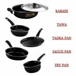 Kashvi Best Non-stick Induction Cookware Set of 5 (Fry Pan 24 Cm/1.5 L, Kadhai 26 Cm/3.5 Litres with lid, Tawa 25 Cm, Sauce Pan 17cm/1.0 Litres, Tadka Pan 17cm/0.6 Litres)|