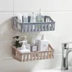 - This multipurpose plastic rack for bathroom, bathroom organizer stand, self adhesive shelf shelves mounted with highly self adhesive pads which holds the surface tightly and this sticker pads is designed to withhold high load bearing capacity up to 5 Kg o