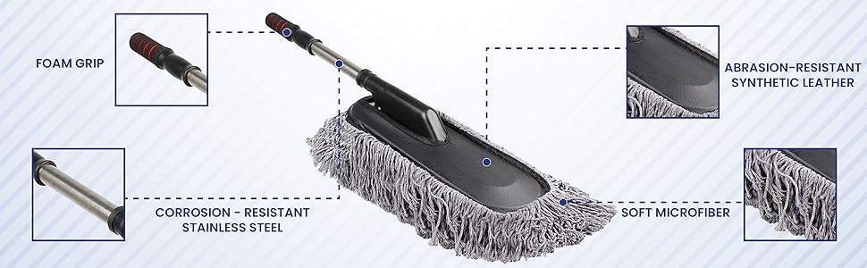 - Anti-scratch & Lint Free - Premium Microfiber bristle prefect for exterior and interior without scratching. It owns strong adsorption force and can easily remove dust and dirt. No hair loss, no debris, light and durable, beautiful and delicate.