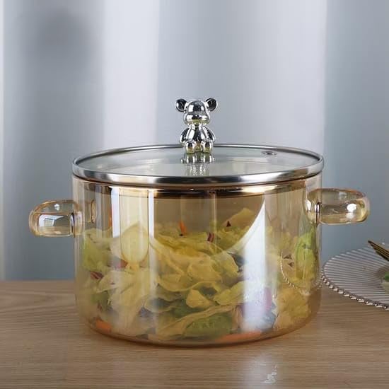 Kesariya Enterprise Glass Simmer Pot with Lid for Cooking Potpourri Cookware Saucepan with Grip Handles with Cover Safe Clear Cooking Pots Glass Saucepan for Soup Milk Pasta 1600ML.