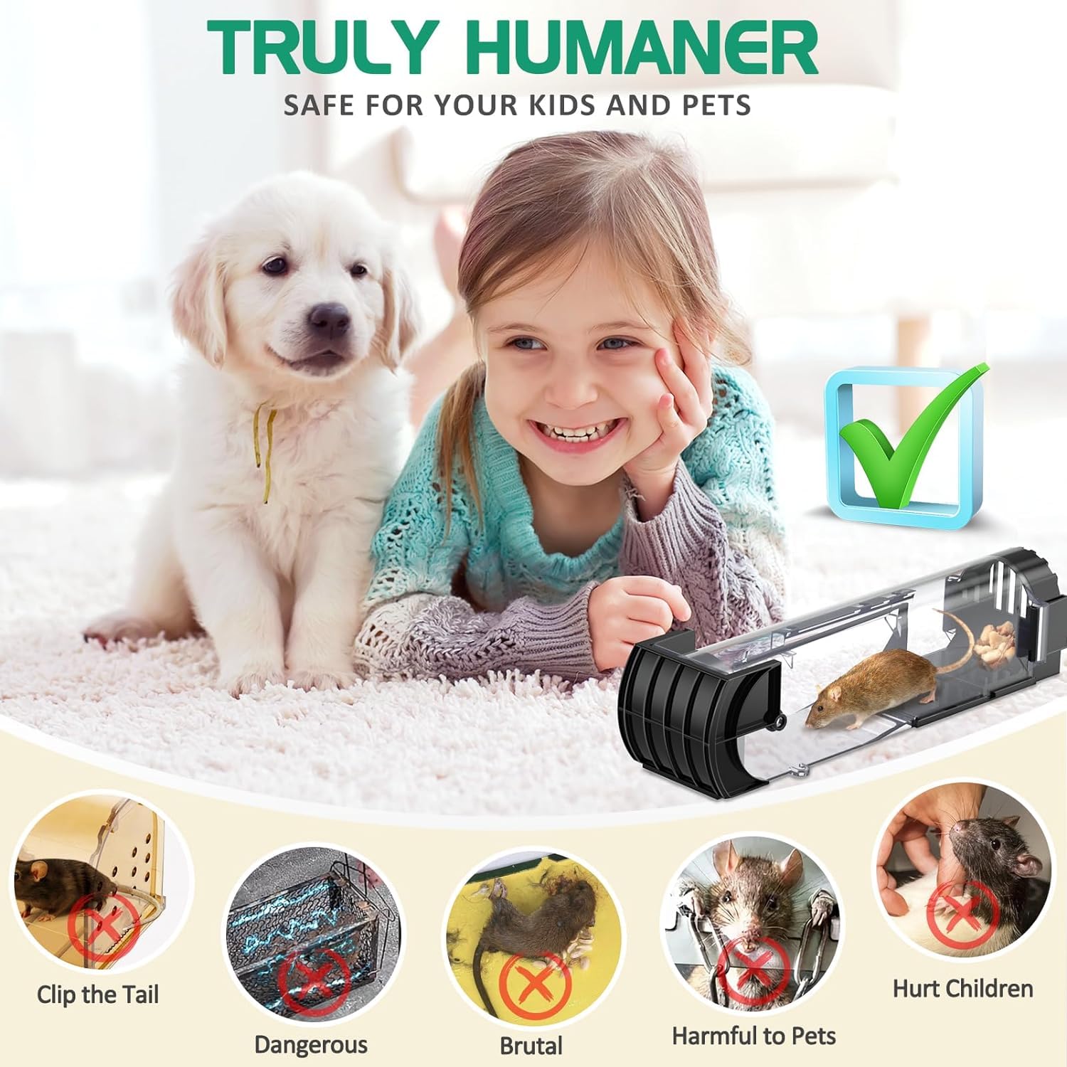 - Effectively traps mice, rats, and other rodents without causing harm, allowing for safe and ethical catch-and-release.