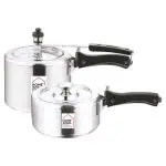 Kitchen Essentials Aluminium Pressure Cooker Combo - 2 & 3 Litre Capacity for Healthy Cooking with Inner Lid, Gas Stove Compatible (Silver)