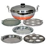 Kitchen Krafts Copper Bottom Stainless Steel 5 In 1 Multi Kadhai with Lid 4.5 L