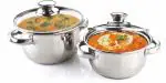 Kitchen Krafts Round Stainless Steel Induction Dutch Oven Set of 2 with 2 Glass Lids (1+ 1.5) L