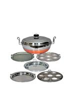 Kitchen Krafts Stainless Steel Copper Bottom Multi Kadhai with Steel Lid and 5 Plates