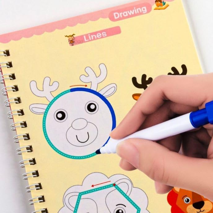 - The kids can use their magic pen to follow the paths and draw different shapes, great for improving their writing skills. They can also master English handwriting skills and write beautiful English words through training with the reusable writing board tr
