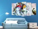 KYARA ARTS Multiple Frames Beautiful Radha Krishna Wall Painting for Living Room Home decor, Bedroom, Office, Hotels, Drawing Room Wooden Framed Digital Painting (50inch x 30inch)04