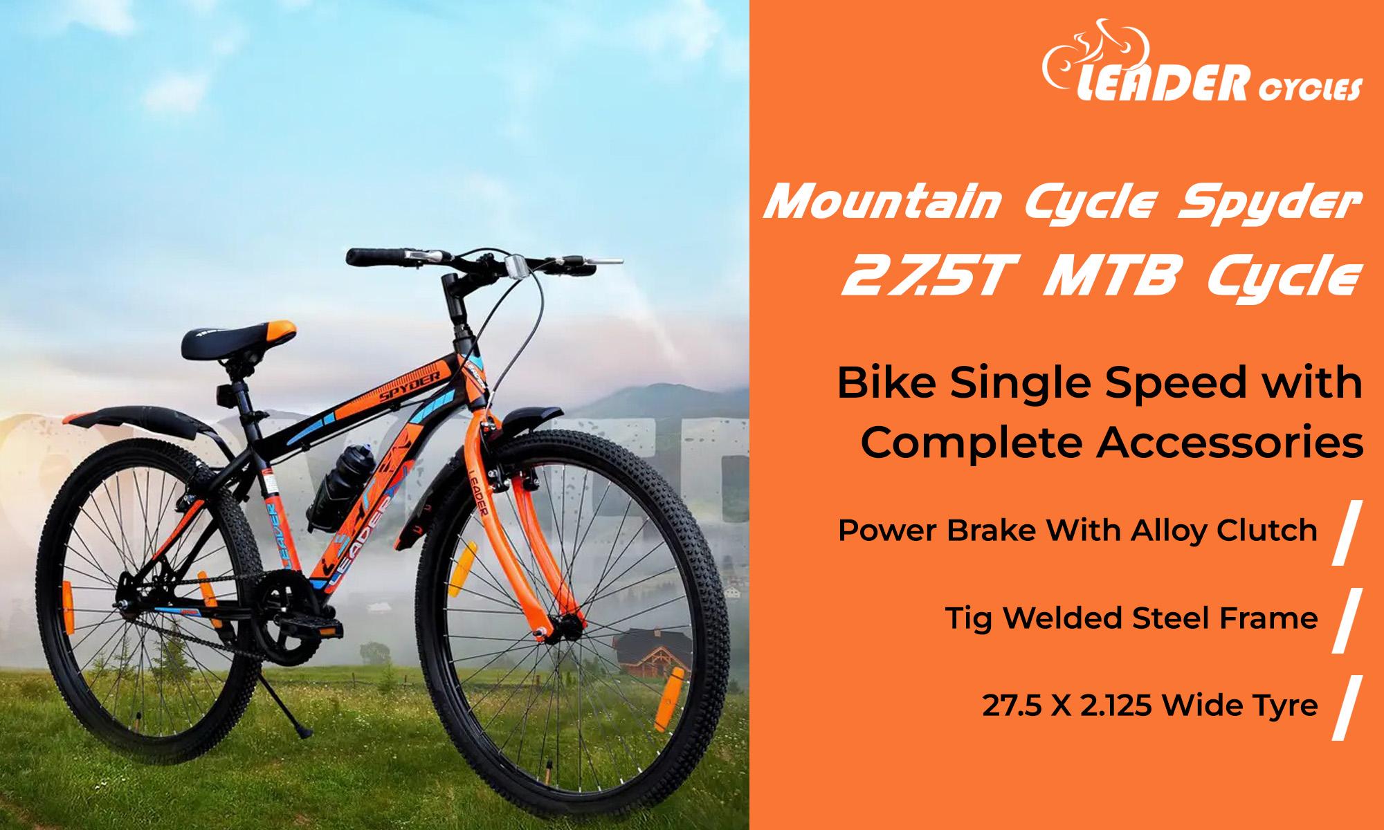 Leader Mountain Cycle Spyder 27.5T MTB Cycle/Bike Single Speed with Complete Accessories for Men - Matt Black/Orange Ideal for 15+ Years | Frame: 19 Inches