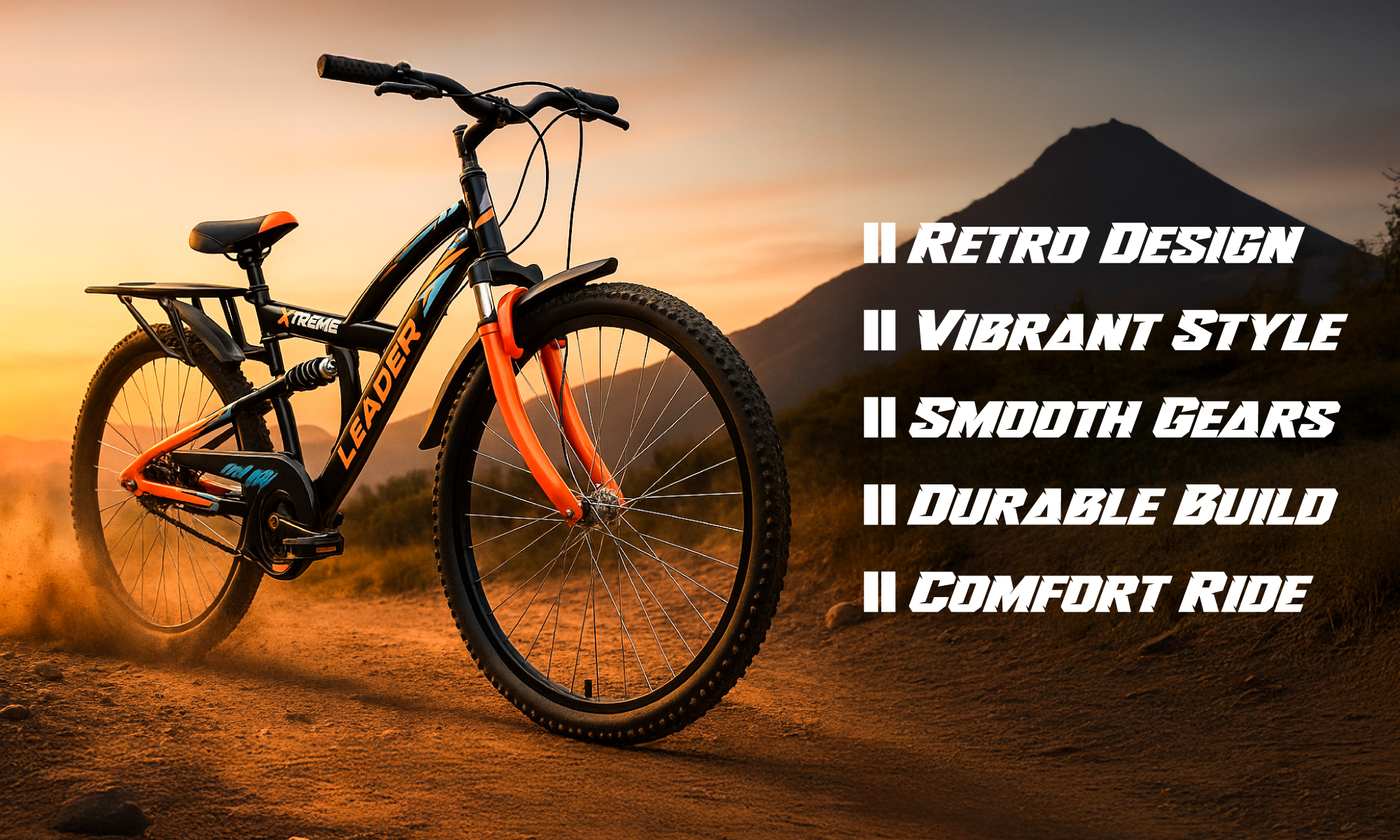 Leader Mountain Cycle Xtreme MTB 26T IBC Mountain Bicycle/Bike Without Gear Single Speed with Rear Suspension for Men - Black/Fluro Orange Ideal for 12+ Year