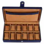 Leather World 12 Slots PU Leather Men Watch Box Display Organizer Case Women Storage Jewellery (Blue)
