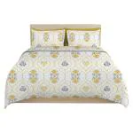Lily Cotton Rich Premium Double Bedsheets & 2 Pillow Cover 110 GSM | Wrinklefree | Ultrasoft- 228x223 Marigold Yellow & Grey