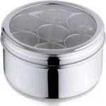 LIMETRO STEEL Masala Dabba Stainless Steel, See Through Lid with 7 Containers, and Spoon - 2000 ml