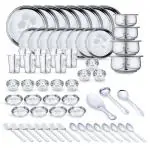 LIMETRO STEEL Pack of 67 Stainless Steel Laser Printed Flawer Design (Serves 8) Dinner Set