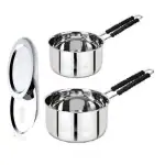 LIMETRO STEEL Stainless Steel 2 pcs Flat Bottom Sauce Pan Milk Pan Tea PAN Combo Set With Lid