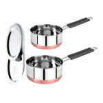 LIMETRO STEEL Stainless Steel Copper Bottom 2 pcs Sauce Pan Milk Pan Tea PAN Combo Set with Lid