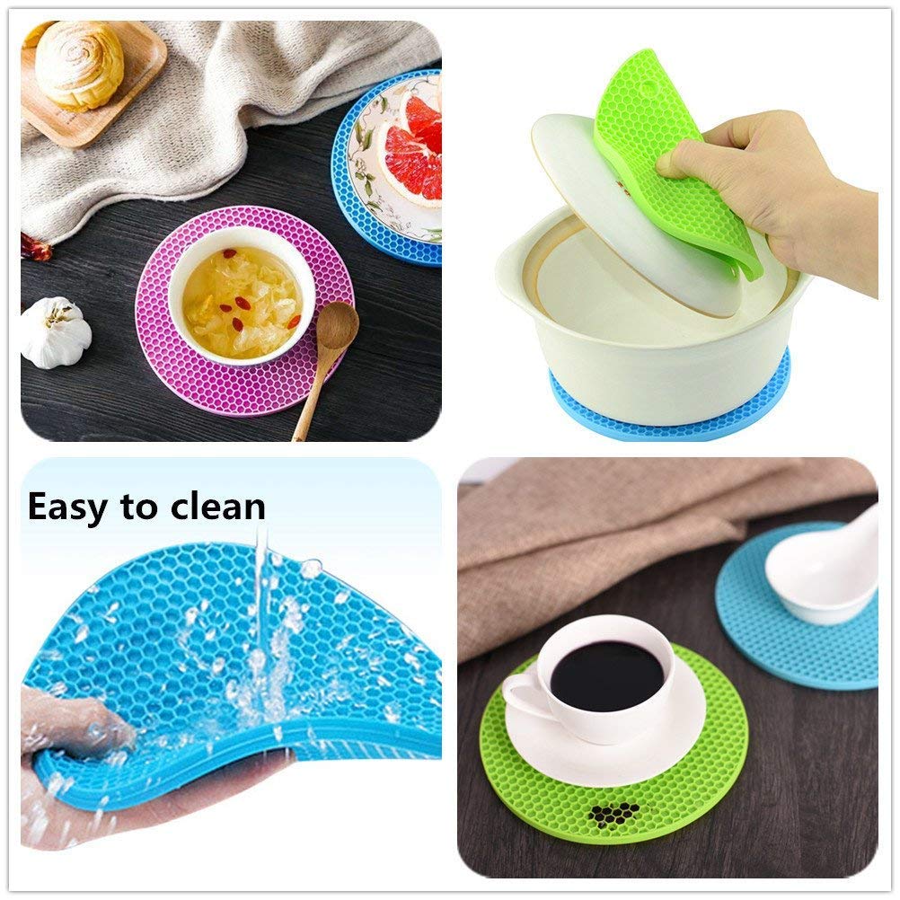 - Decorative and Color Your Home: This silicone trivet set has 3 different designs to decor your home. Practical and useful hot mats for kitchen but also work great to enhances the decor to your Dinner room, Terrance and any other place at home.Easy to Wash
