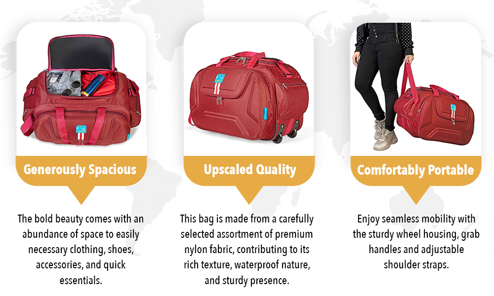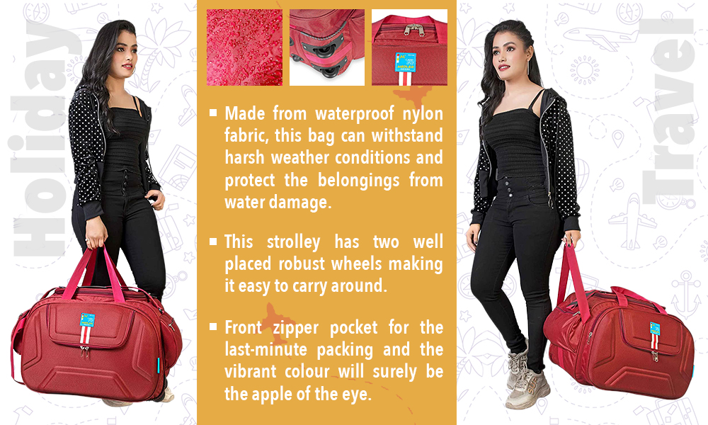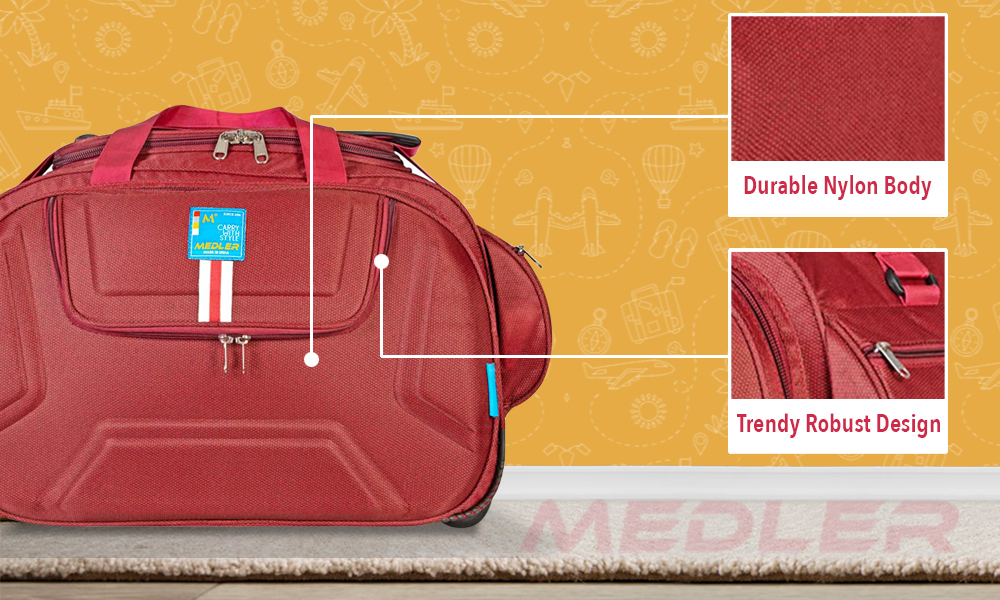 MEDLER Derben Nylon 55 L Waterproof Strolley Duffle Bag- 2 Wheels - Luggage Bag (Red)