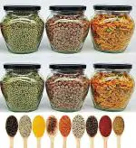 MEELANA Airtight Black Glass Jars and Containers 400 ml (Pack of 6)