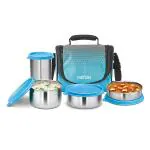 MILTON Tasty 3 Stainless Steel Combo Lunch Box, 3 Containers (200 ml, 320 ml, 500 ml) and 1 Tumbler, 380 ml, Cyan
